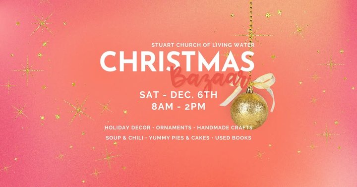 Stuart Church of Living Water Christmas Bazaar 8am to 2pm. Baked items, arts and crafts, book room