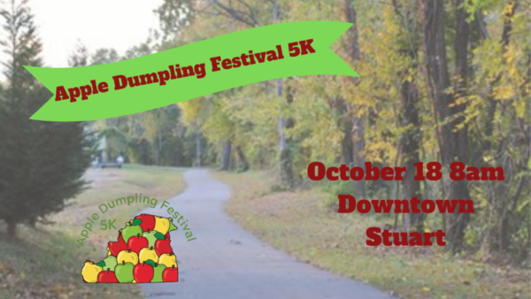 Mark those calendars and sign up for the annual Apple Dumpling Festival 5k -- Saturday, October 18th, 8:00 AM, Downtown Stuart, VA. Race benefits Dan River Basin Association's trail development and enhancements in Patrick County., . . .