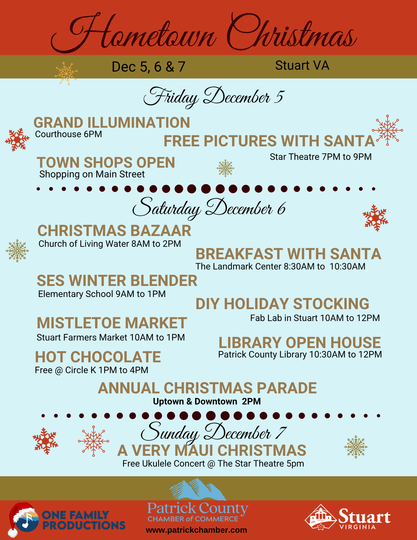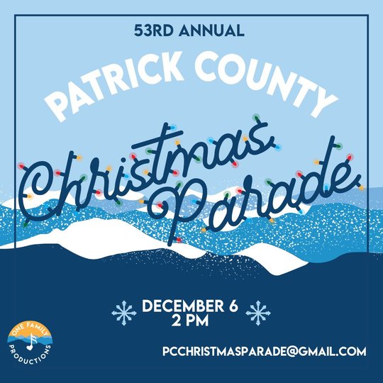 Patrick County Christmas Parade will be celebrating its 53rd year. Join us on Dec 6th at 2pm as Santa makes his way through Stuart.