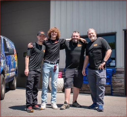 Daniel Hanks, Owner, Operator; Nathaniel Hanks, Certified Glass Technician; Nicholas Hanks, Certified Glass Technician; Joshua Tyler, Certified Tint/Audio Remote Start Specialist and Ciji Barbour, Office Manager.