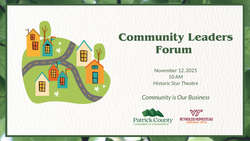 The Patrick County Chamber of Commerce and the Reynolds Homestead are excited to announce this year's Community Leaders Forum event will be held on November 12, 10:00 am to 12:00 pm at the Star Theatre, located at 318 Patrick Avenue in Stuart. This ever-popular event with local leaders is a community favorite. For 2025, updates will be given by representatives of Patrick County Economic Development Authority, Town of Stuart, Virginia Department of Transportation, West Piedmont Planning District Commission and Step Inc. Other speakers will be added once confirmed. Join us on Wednesday, November 12, at 10:00am for the 2025 edition of Community Leaders Forum, RSVP is requested and light refreshments will be served. To RSVP, please visit the website at www.patrickchamber.com or https://bit.ly/PCleadersforum2025 or call the office 276-694-6012. Link: https://docs.google.com/forms/d/e/1FAIpQLSdbHacmcQ7EXV1gGBhVSp5QRQqPzyiaEsJK172IW8PJ2kbsqw/viewform.